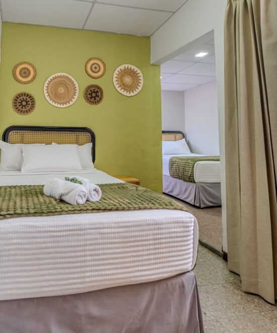 Diseñada para la comodidad compartida, esta habitación se distingue por sus toques en tonos tierra y su luz suave que crea un ambiente sereno, ideal para descansar juntos sin renunciar a la elegancia.